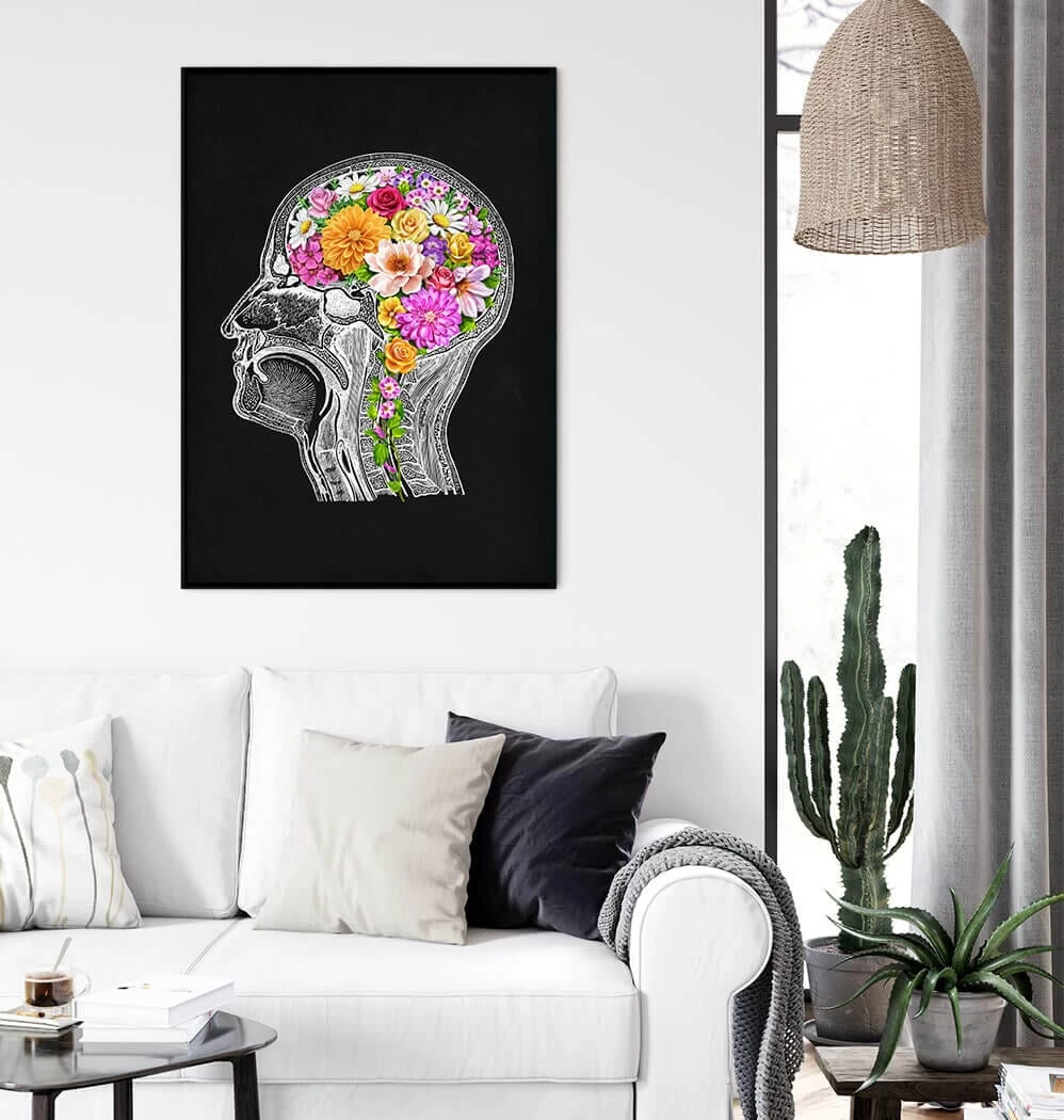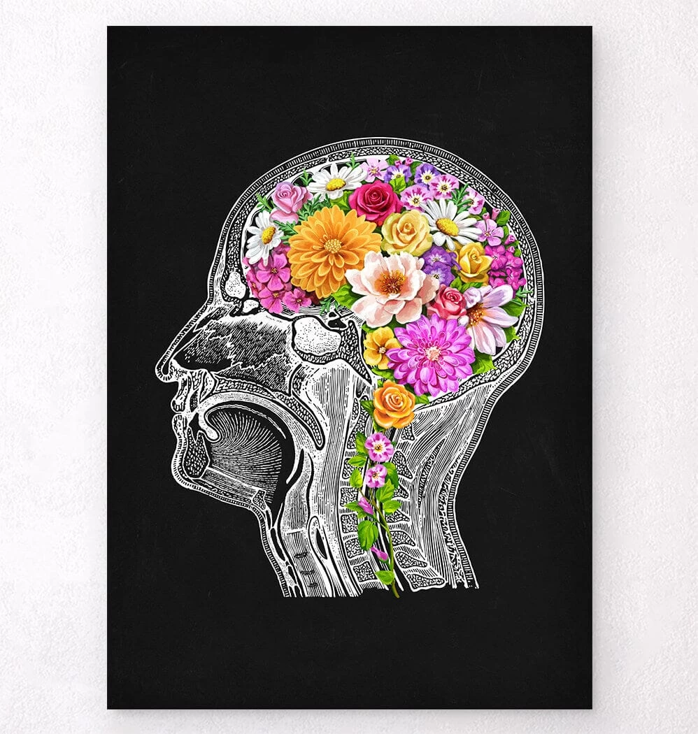 Also available on whiteย background.ย Brain anatomyย in floral style. This premium art print is a perfect dรฉcorย piece for a home, clinic, or therapy room. It’s also a great gift for health workers and medical students.ย