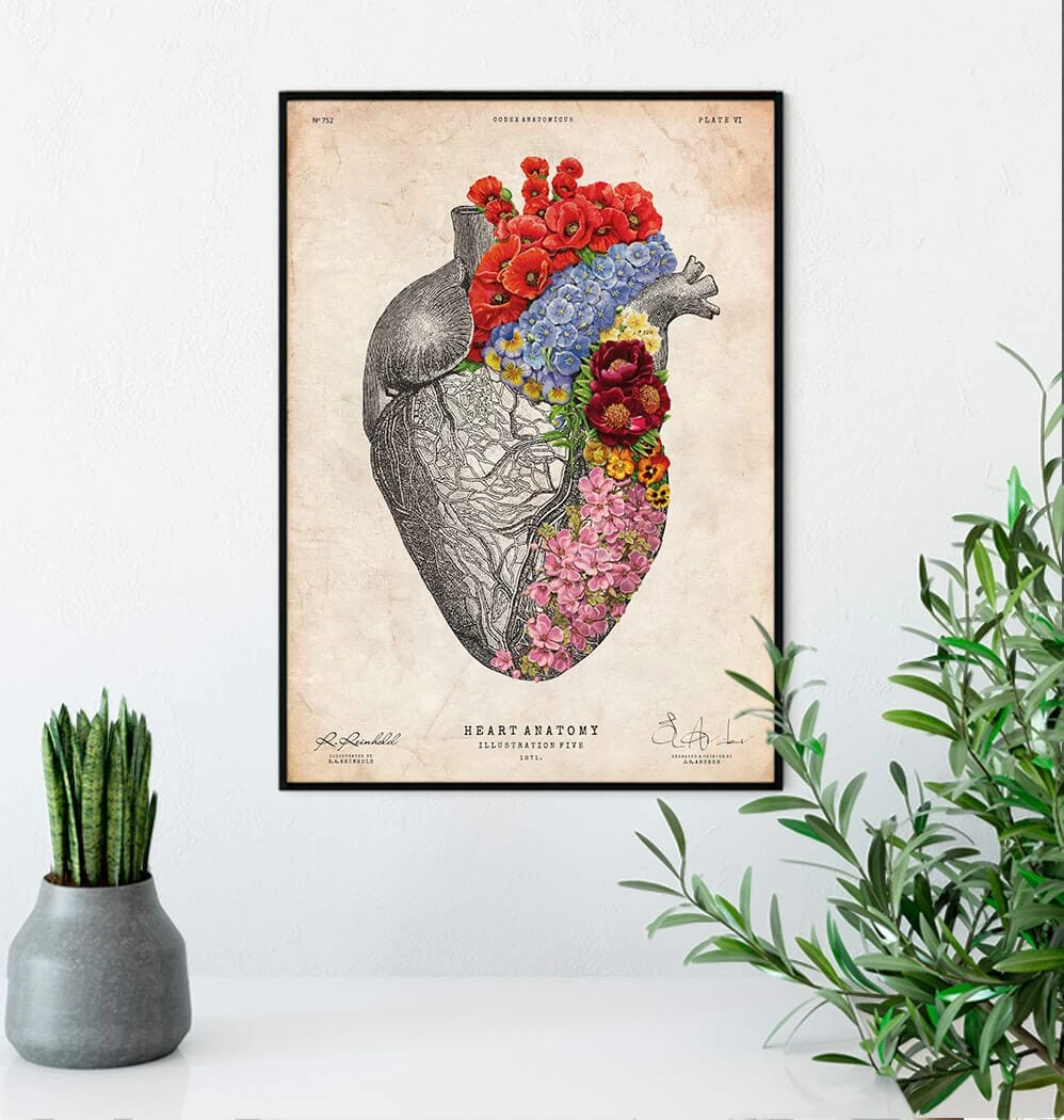 Thisย heart anatomy art printย is a wonderful addition to any interior and will make a perfect gift for doctors, nurses and medical students