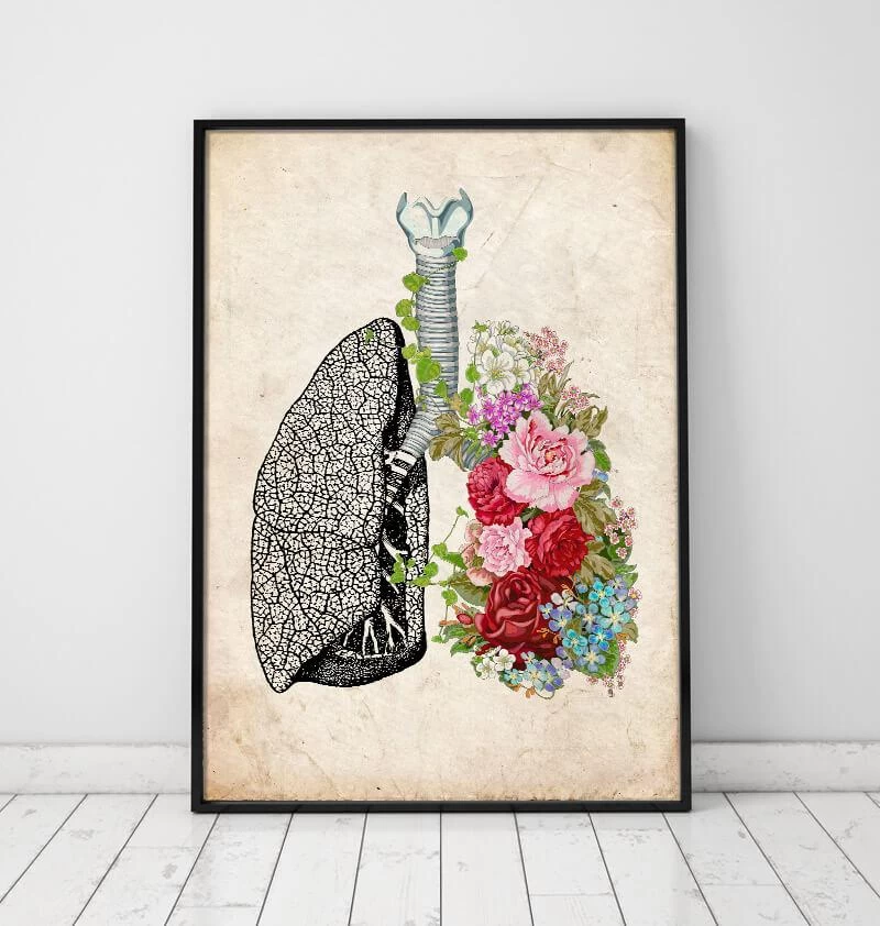 Also available on black and white backgrounds. This lungs anatomy art print is a wonderful addition to any interior and will make a perfect gift for doctors, nurses and medical students