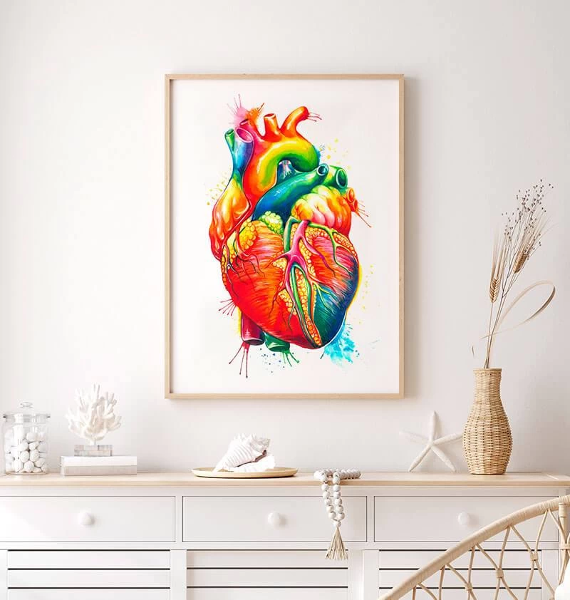This heart anatomy art print is a wonderful addition to any interior and will make a perfect gift for doctors, nurses and medical students