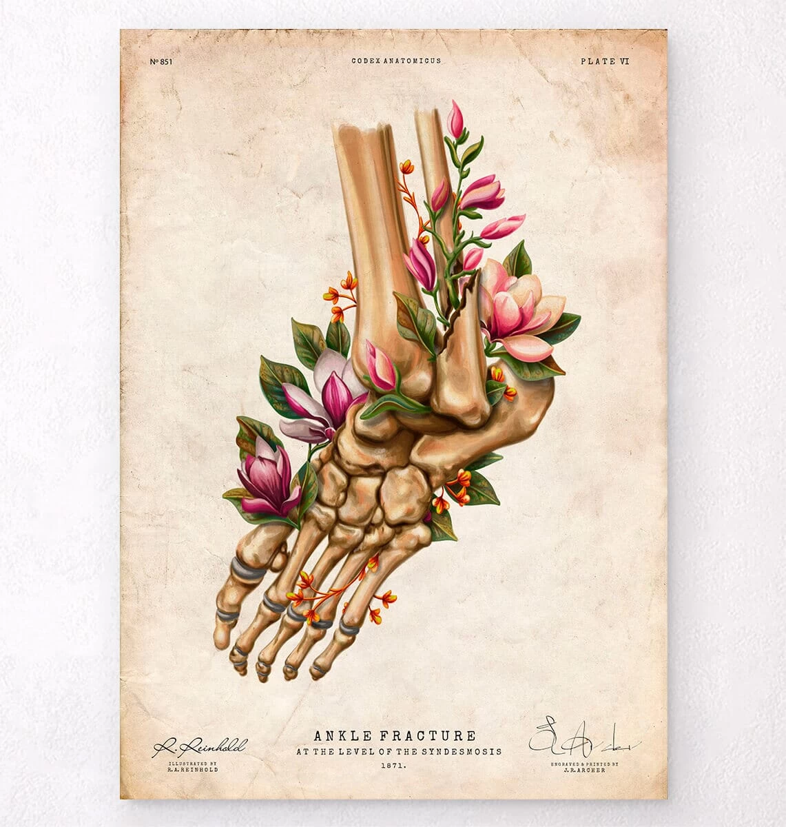 Also available onย blackย andย white backgrounds. This ankle anatomy art print is a wonderful addition to any interior and will make a perfect gift for doctors, nurses, and medical students.