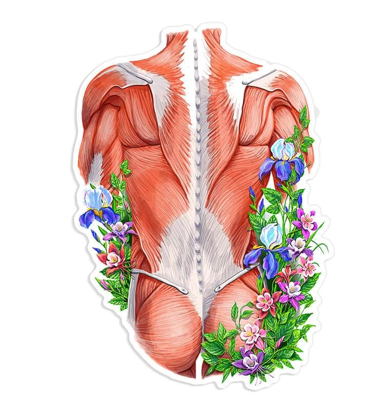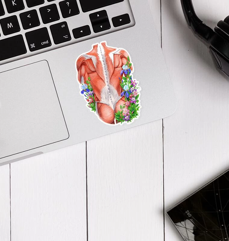 Beautiful back muscles anatomy vinyl sticker. Perfect for applying to laptops, mugs, notebooks, water bottles and pretty much anything else!