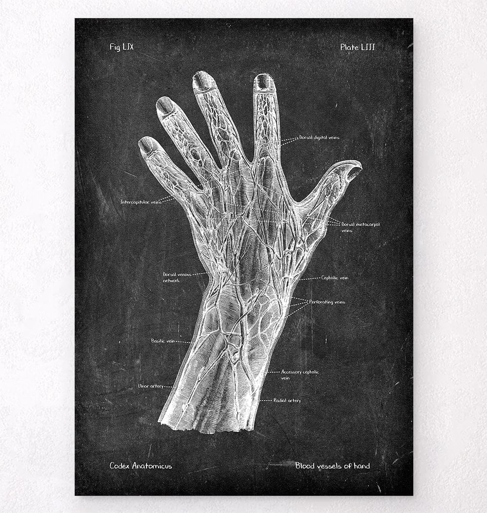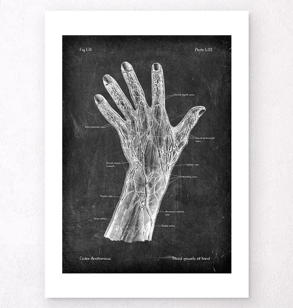 Thisย hand blood vessels anatomy art print is a wonderful addition to any interior and will make a perfect gift for doctors, nurses and medical students