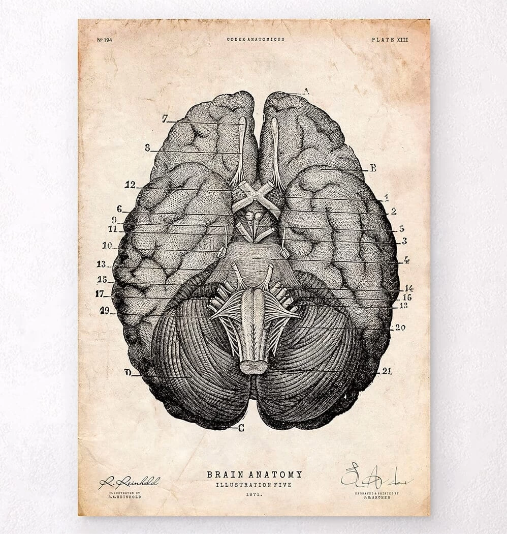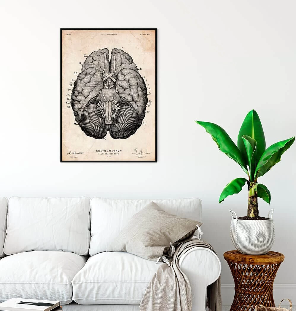 This brain anatomy art print is a wonderful addition to any interior and will make a perfect gift for doctors, nurses and medical students