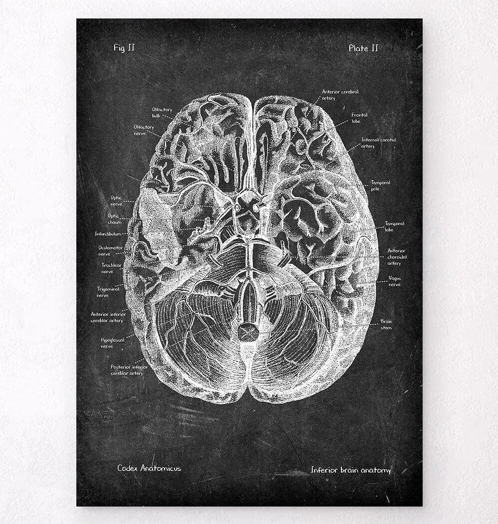 This brain anatomy art print is a wonderful addition to any interior and will make a perfect gift for doctors, nurses and medical students