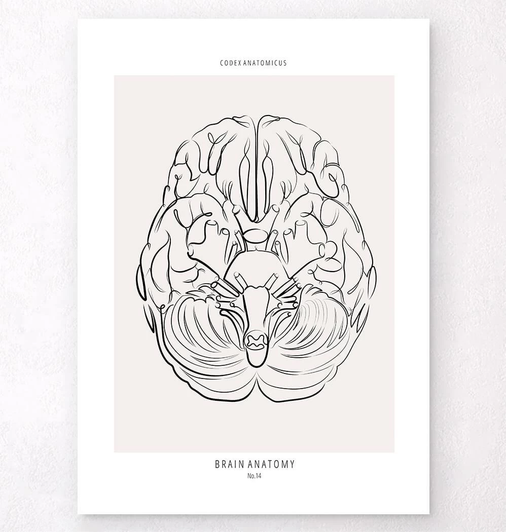 Minimalist inferior brain view illustration. This premium art print is a perfect décor piece for a home, neurology clinic, or therapy room. It’s also a great gift for health workers and medical students.
