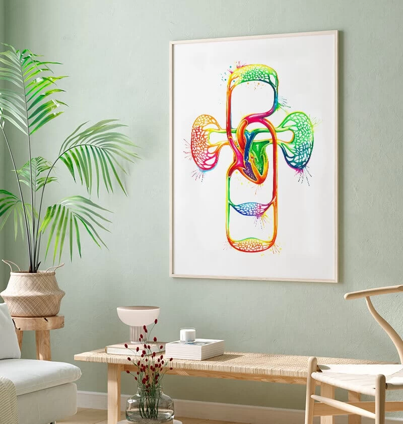 This premium cardiovascular anatomy art print is a wonderful addition to any interior and will make a perfect gift for doctors, nurses and medical students