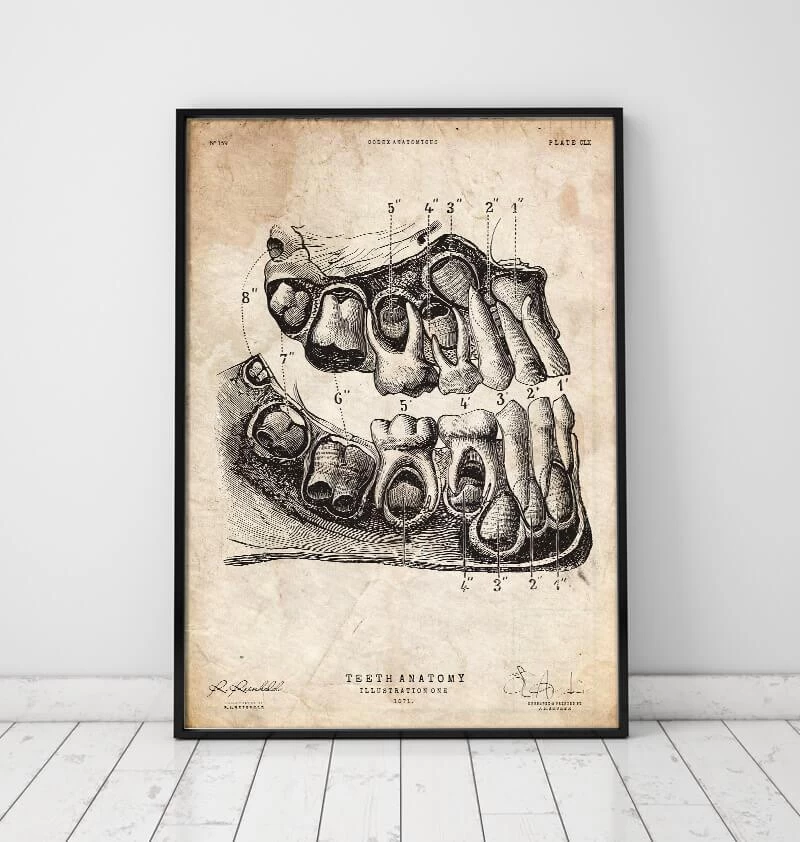 This dental anatomy art printย is a wonderful addition to any interior and will make a perfect gift for dentists, nurses and dentistry students