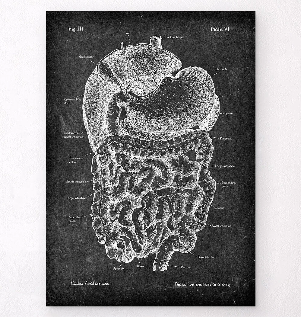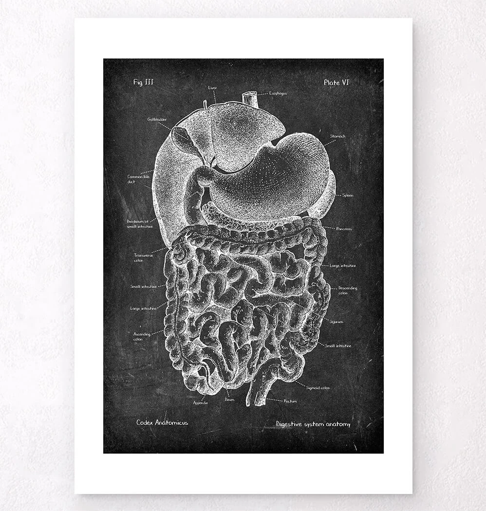 This digestive systemย anatomy art printย is a wonderful addition to any interior and will make a perfect gift for doctors, nurses and medical students