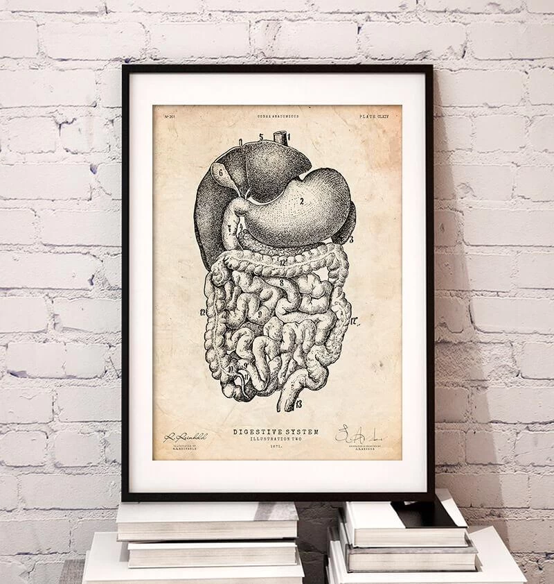 This digestive systemย anatomy art printย is a wonderful addition to any interior and will make a perfect gift for doctors, nurses and medical students