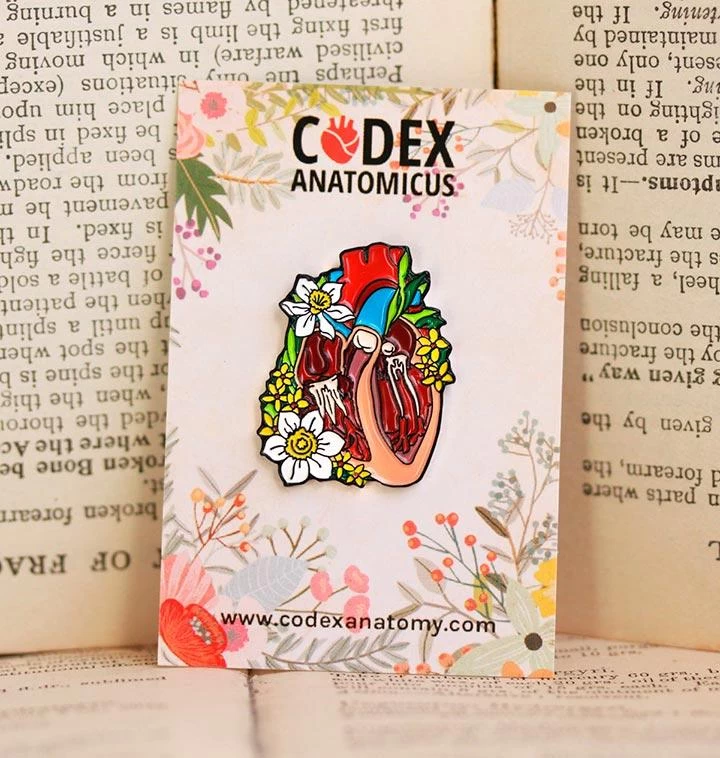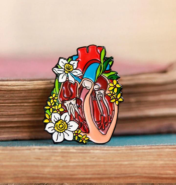 Beautiful heart with flowers enamel pin. A perfect multifunctional accessory that can be worn as a brooch or as decoration for a bag. Has a stamp with Codex Anatomicus logo on the back – great for collecting.