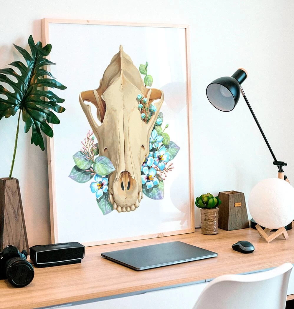 Also available on black and vintage backgrounds. This dog skull anatomy art print is a wonderful addition to any interior and will make a perfect gift for veterinaries.