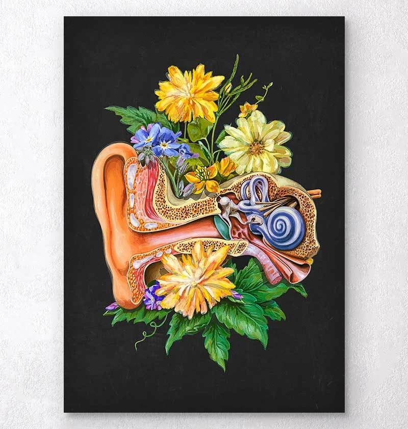 Also available onย blackย andย vintageย backgrounds. Thisย ear anatomy art printย is a wonderful addition to any interior and will make a perfect gift for doctors, nurses and medical students