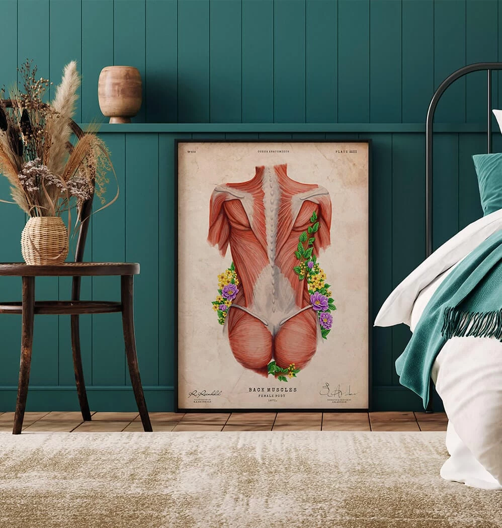 This muscles anatomy art print is a wonderful addition to any interior and will make a perfect gift for doctors, nurses and medical students