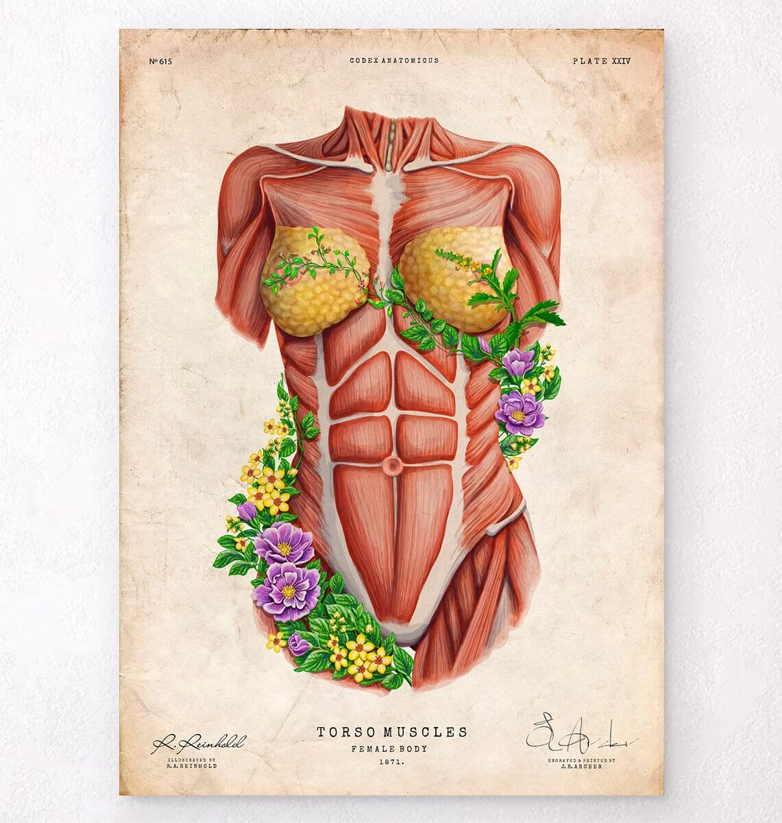 This muscles anatomy art print is a wonderful addition to any interior and will make a perfect gift for doctors, nurses and medical students
