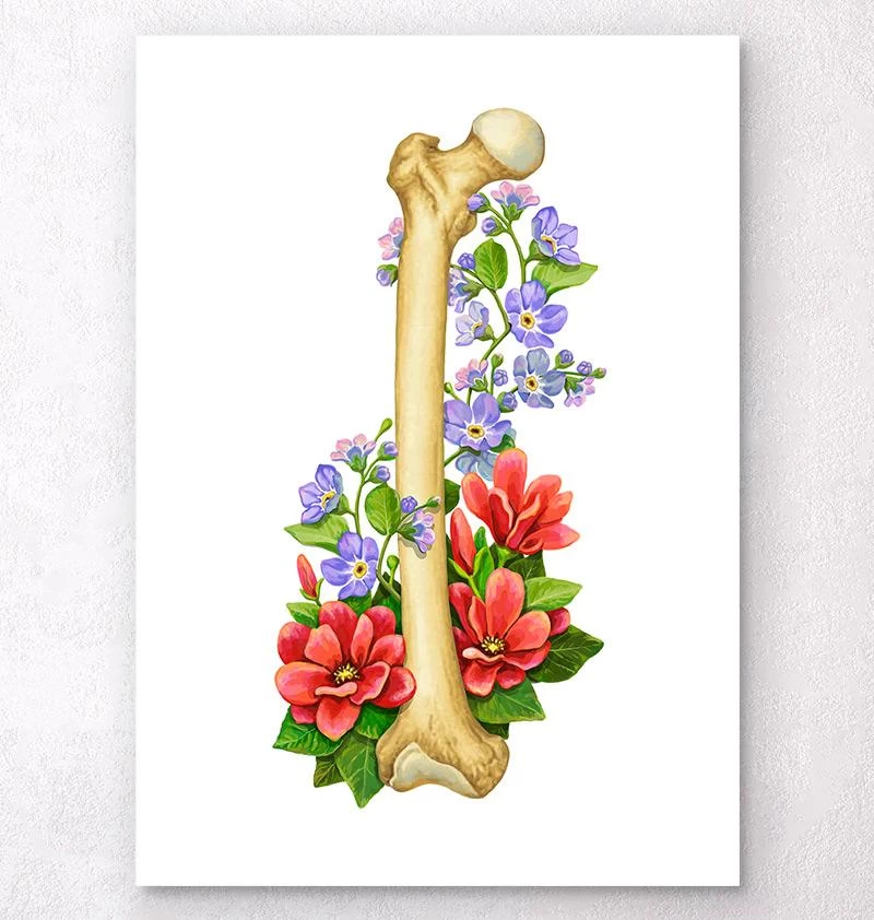 Also available on black and vintage backgrounds. This femur anatomy art print is a wonderful addition to any interior and will make a perfect gift for doctors, nurses, and medical students