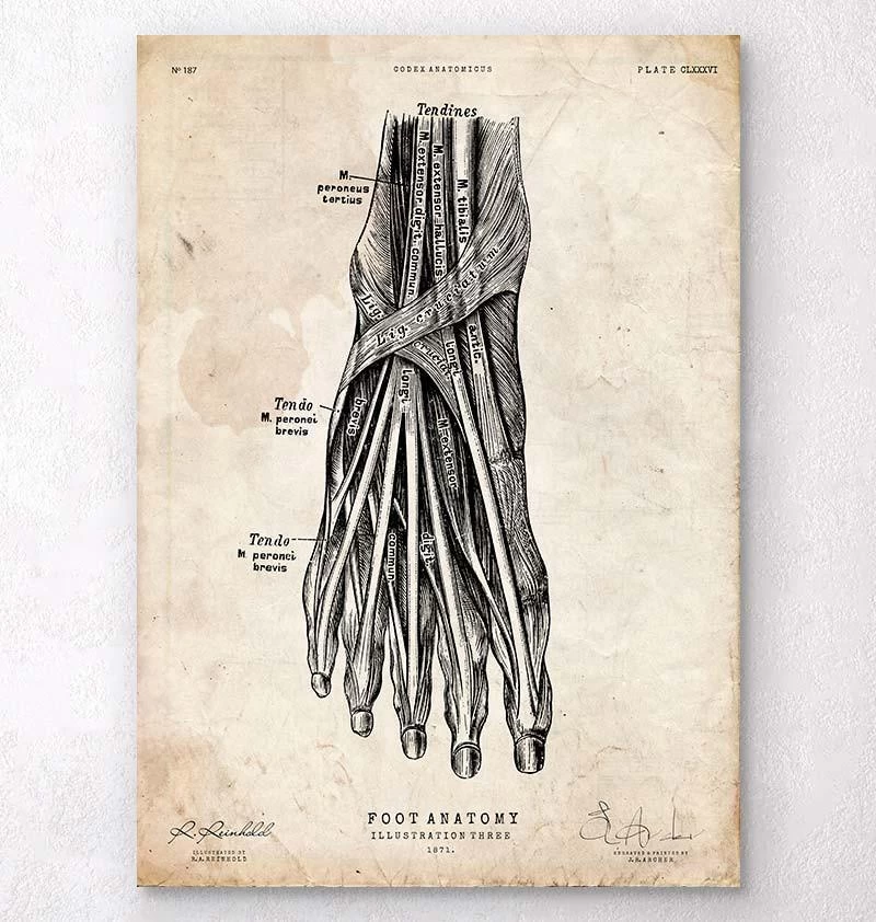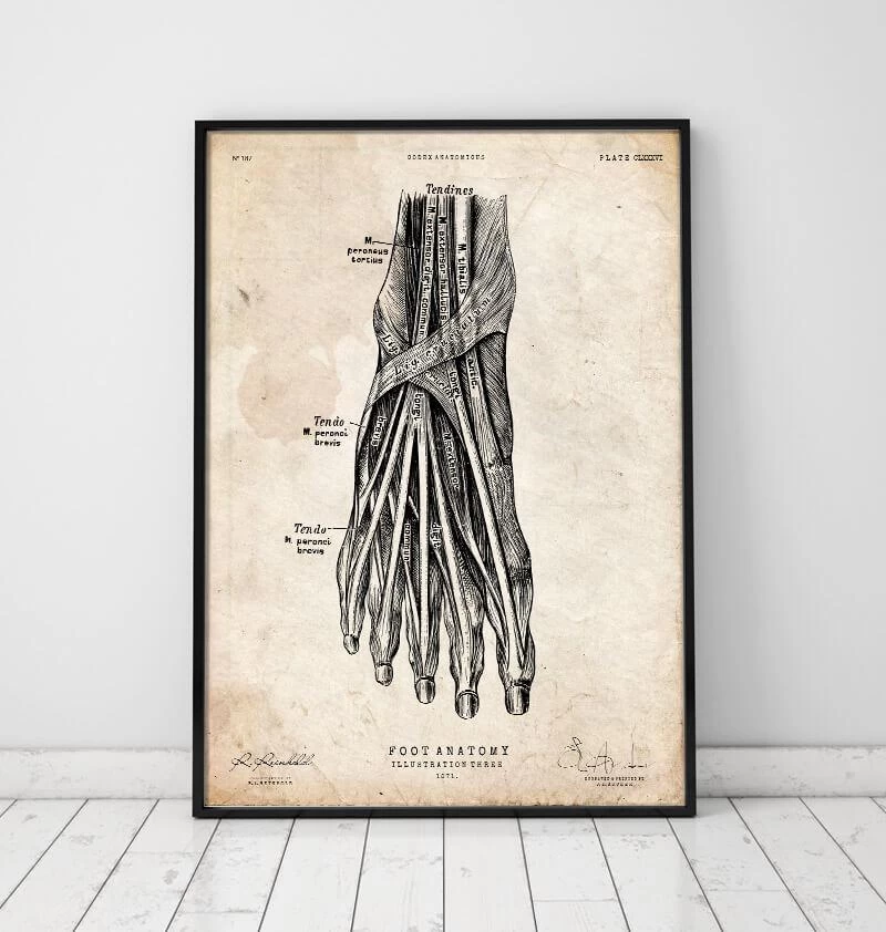 This foot anatomy art print is a wonderful addition to any interior and will make a perfect gift for doctors, nurses and medical students