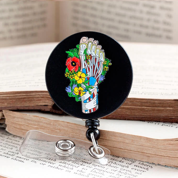 Beautiful anatomical foot badge reel. Perfect for holding your badge, keys, fobs etc. Retractable cord for your convenience.