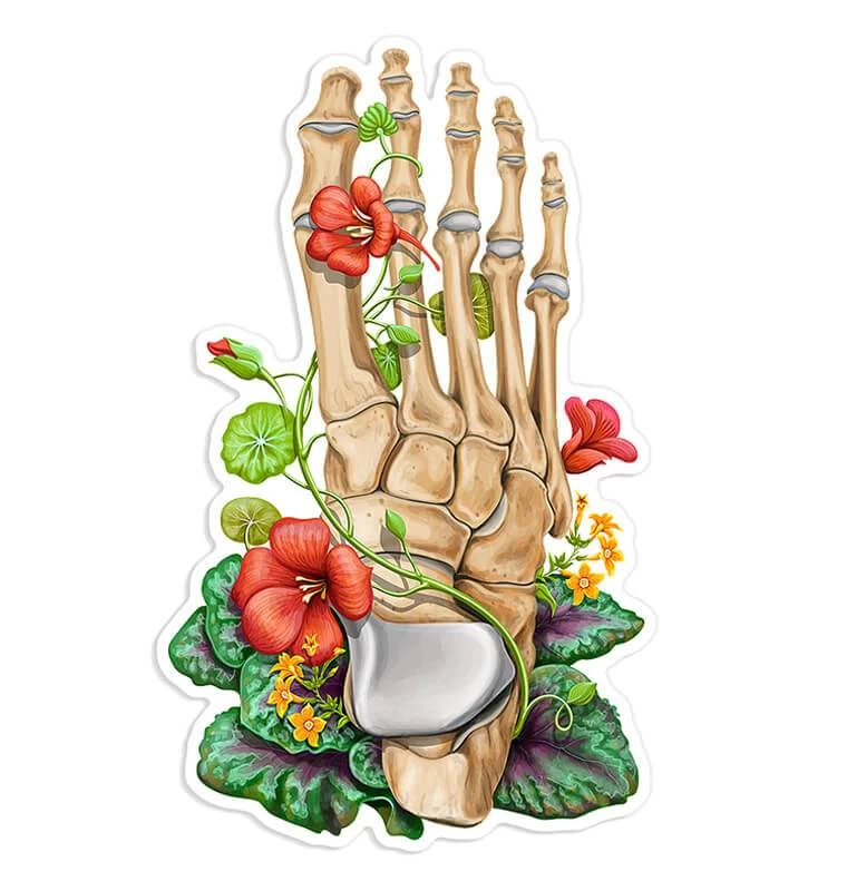 Beautiful foot bones anatomy vinyl sticker. Perfect for applying to laptops, mugs, notebooks, water bottles and pretty much anything else!