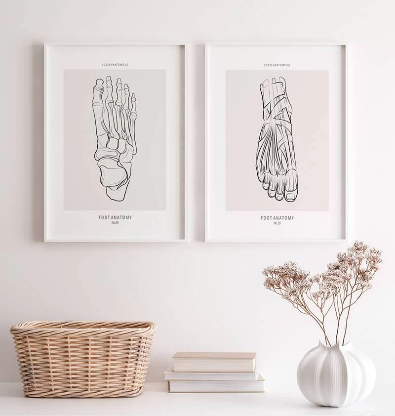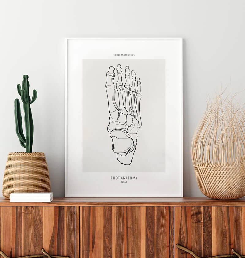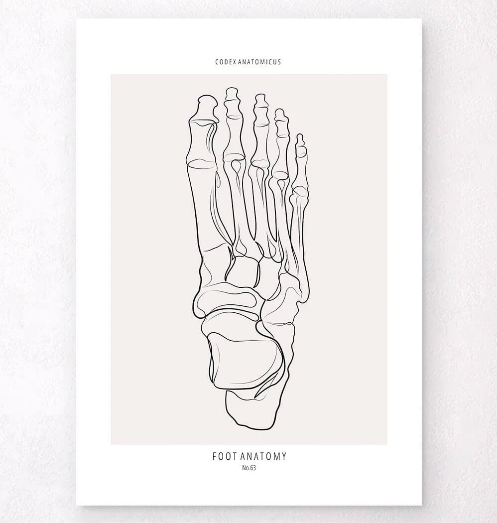 Minimalist design showing the anatomy of the foot. This premium art print is a perfect décor piece for a home, orthopedic clinic, or physiotherapy room. It’s also a great gift for health workers and medical students.