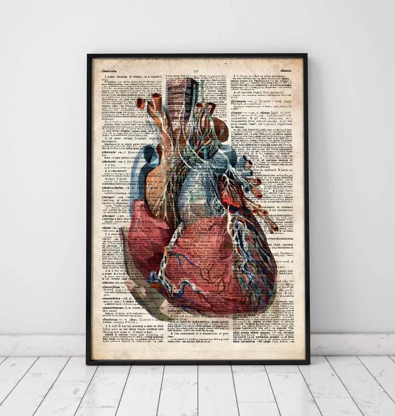 This heart anatomy art print is a wonderful addition to any interior and will make a perfect gift for doctors, nurses, and medical students. Also available on plain white background.