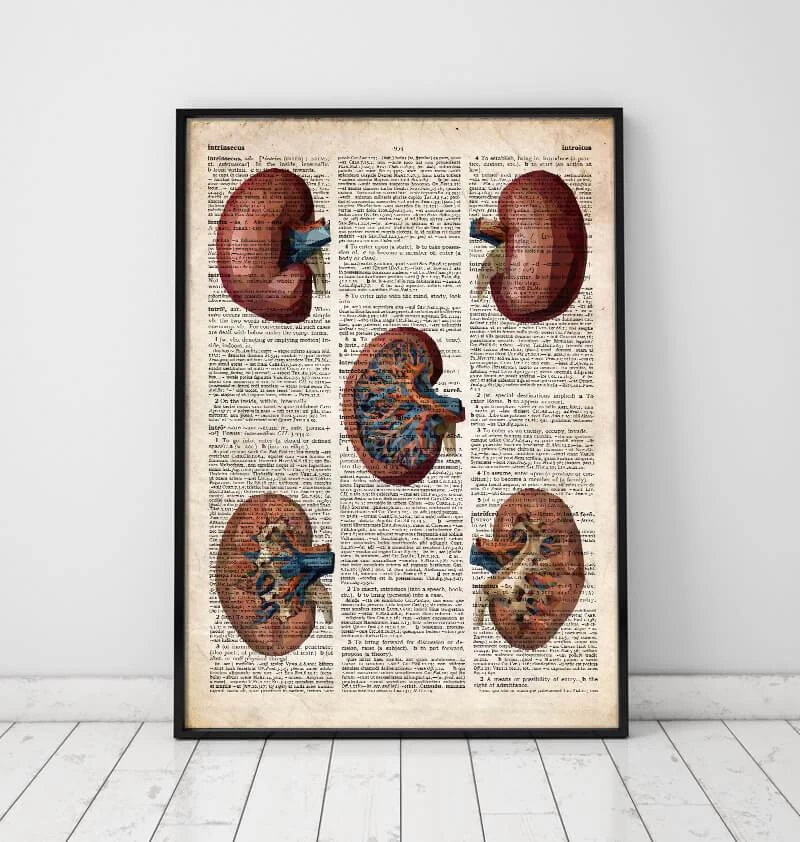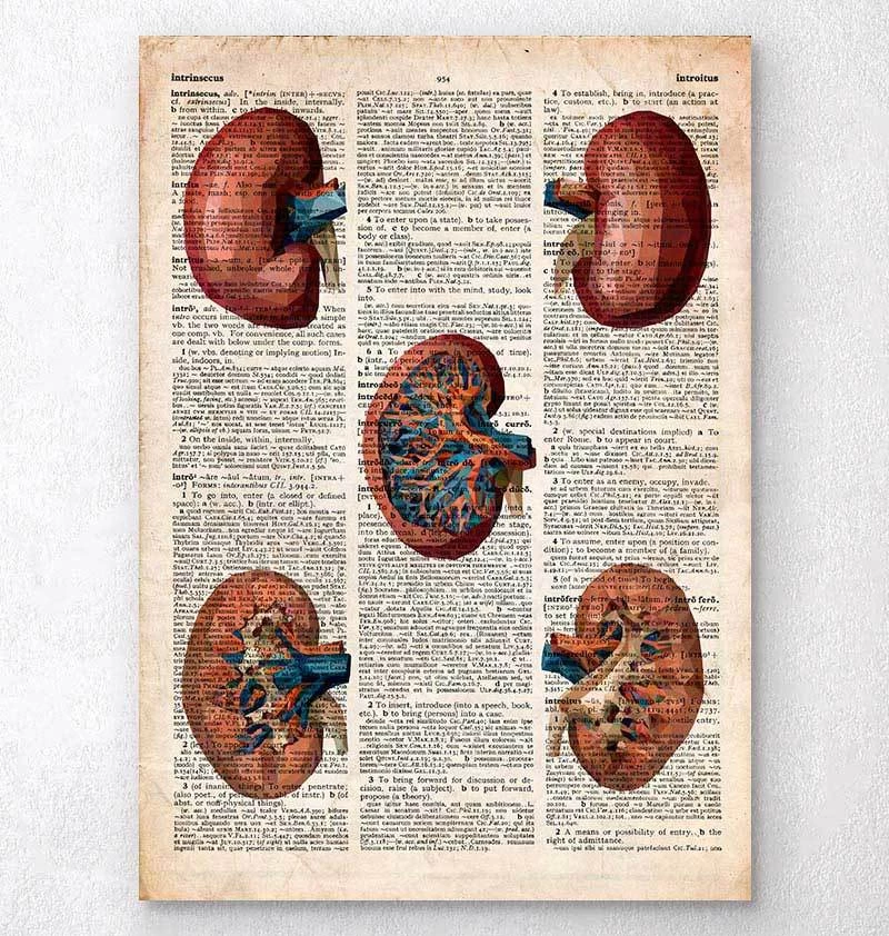 This kidney anatomy art print is a wonderful addition to any interior and will make a perfect gift for doctors, nurses, and medical students. Also available on classic white background.