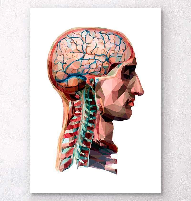 This head and brain anatomy art print is a wonderful addition to any interior and will make a perfect gift for doctors, nurses, and medical students. Also available on the old dictionary page background.