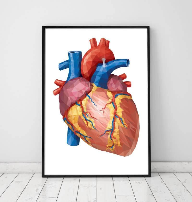 This heart anatomy art print is a wonderful addition to any interior and will make a perfect gift for doctors, nurses, and medical students. Also available on the old dictionary page background.