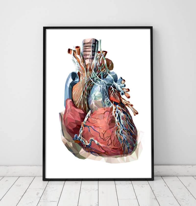 This heart anatomy art print is a wonderful addition to any interior and will make a perfect gift for doctors, nurses, and medical students. Also available on the old dictionary page background.