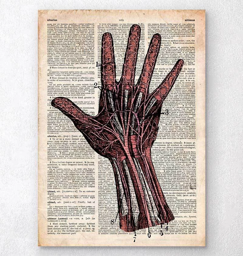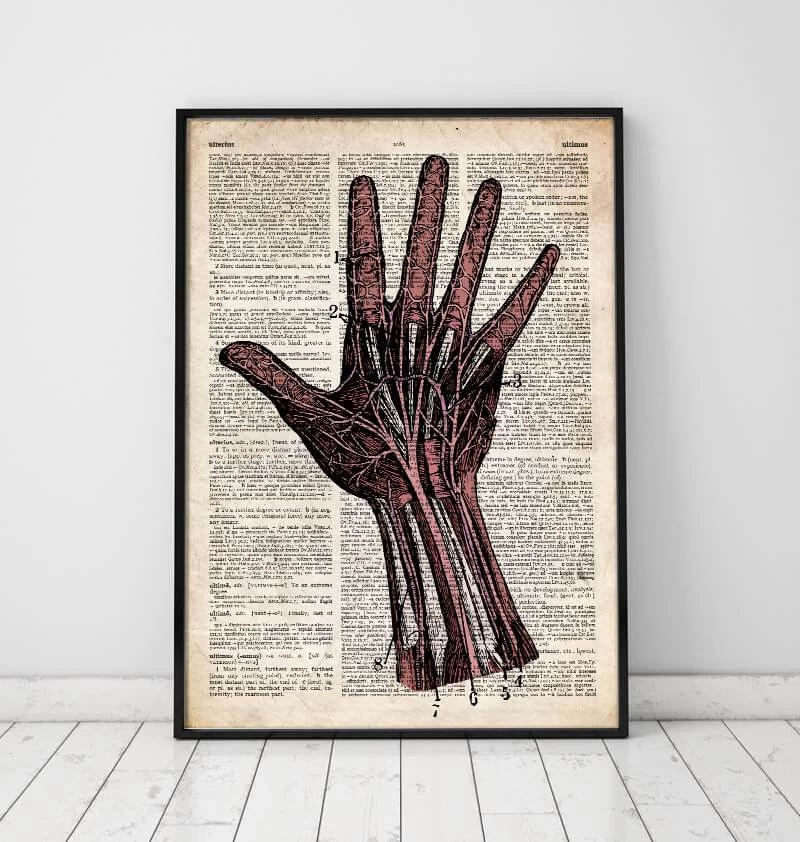 This hand anatomy art print is a wonderful addition to any interior and will make a perfect gift for doctors, nurses and medical students