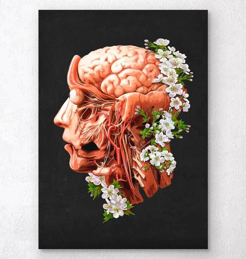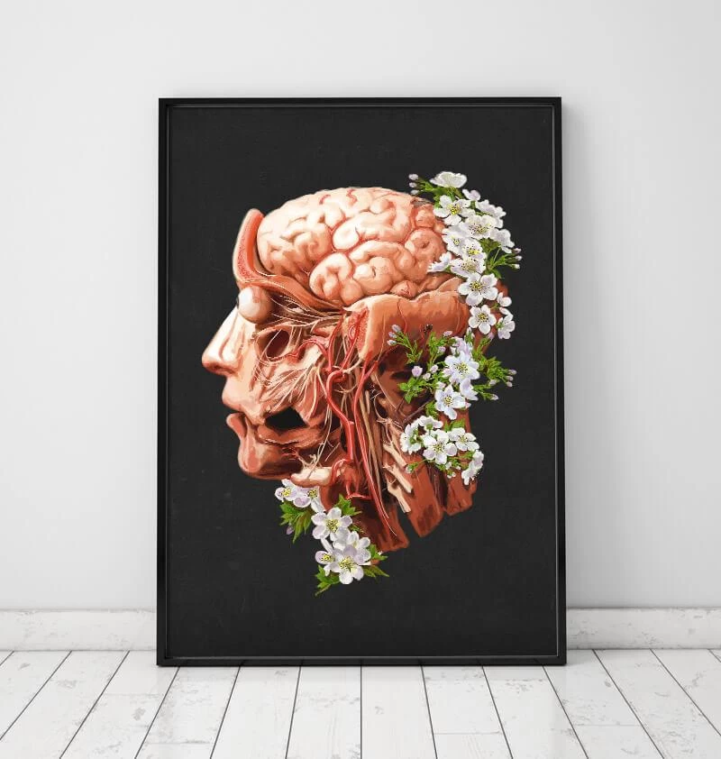 Also available on white and vintage backgrounds. This head, brain and arteries anatomy art print is a wonderful addition to any interior and will make a perfect gift for doctors, nurses and medical students