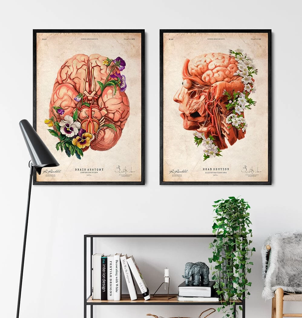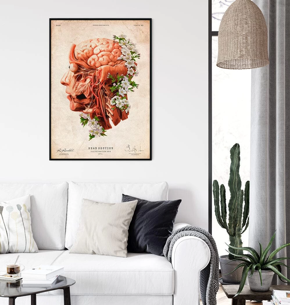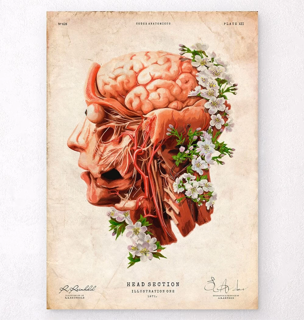 Also available onย whiteย andย blackย backgrounds.ย This head, brain and arteries anatomy art printย is a wonderful addition to any interior and will make a perfect gift for doctors, nurses and medical students.ย