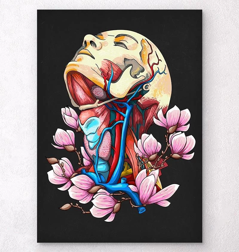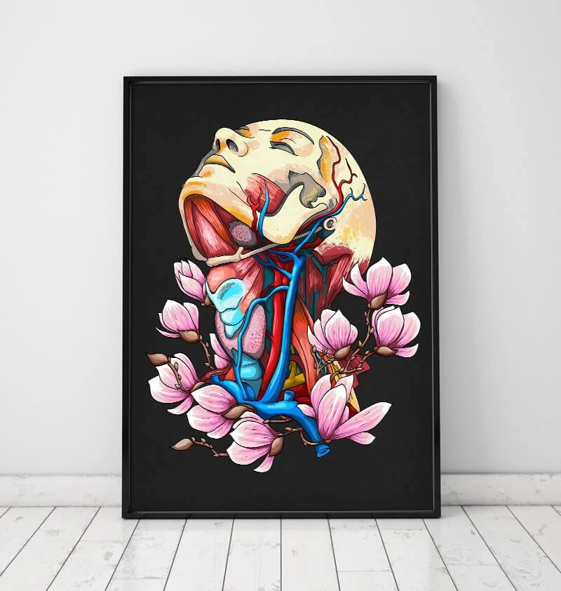 This human anatomy art print is a wonderful addition to any interior and will make a perfect gift for doctors, nurses, and medical students. Also available on white, vintage, old dictionary, or white dictionary backgrounds.