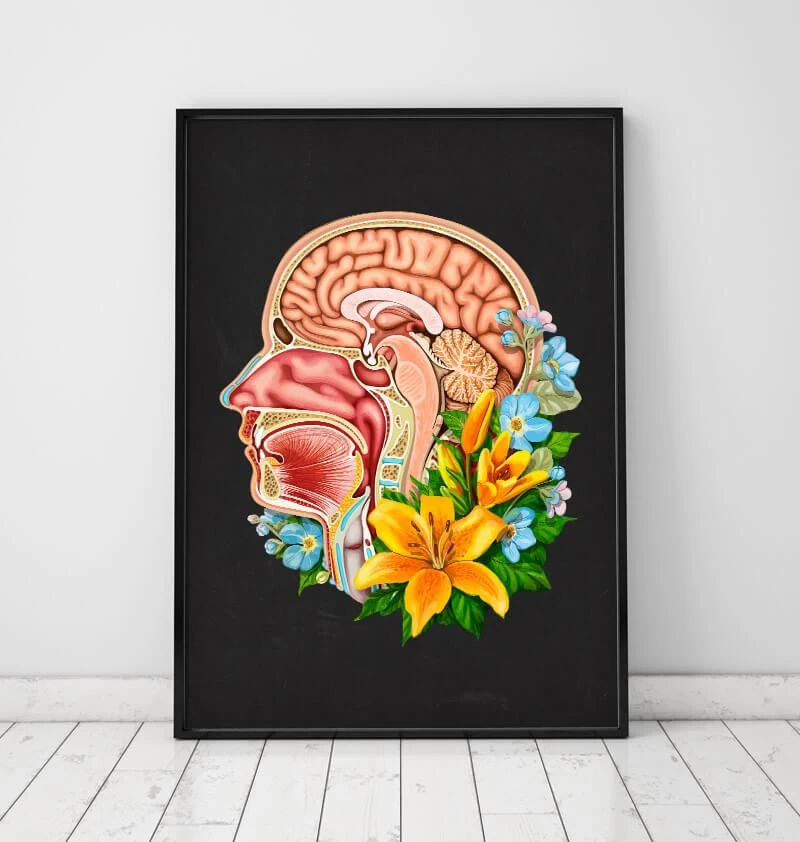 This head section anatomy art print is a wonderful addition to any interior and will make a perfect gift for doctors, nurses and medical students