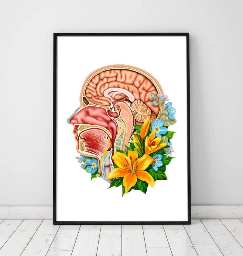 This head section anatomy art print is a wonderful addition to any interior and will make a perfect gift for doctors, nurses and medical students