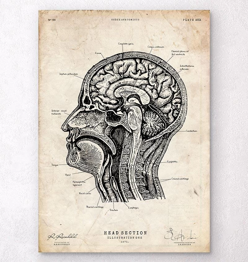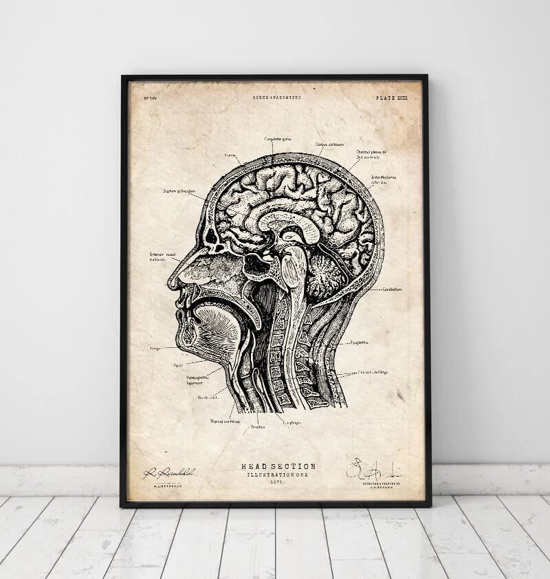 This head anatomy art print is a wonderful addition to any interior and will make a perfect gift for doctors, nurses and medical students