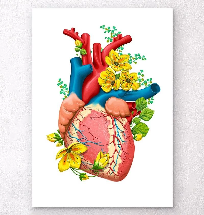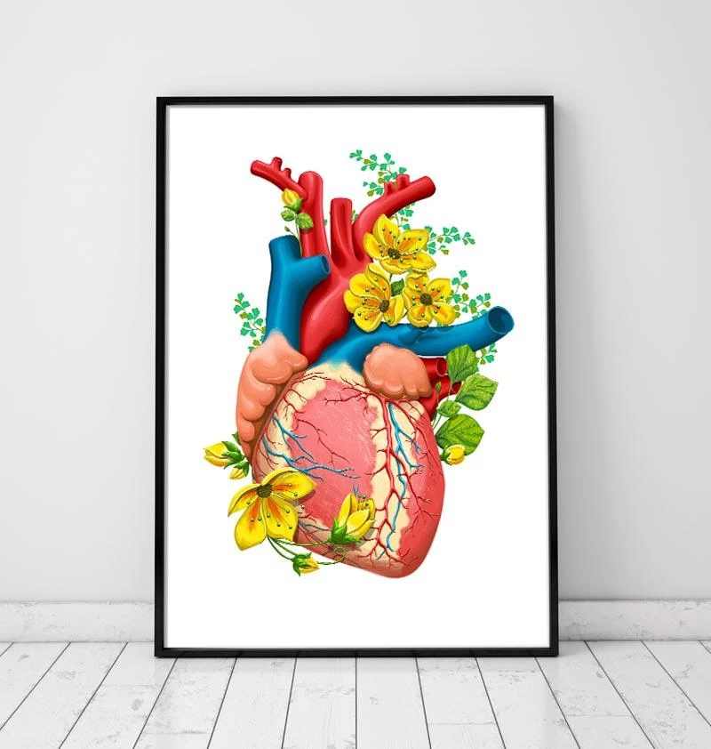 Also available on black and vintage backgrounds. This heart anatomy art print is a wonderful addition to any interior and will make a perfect gift for doctors, nurses, and medical students