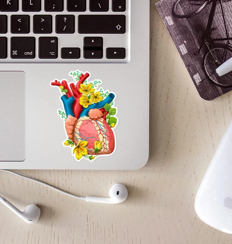 Beautiful heart anatomy vinyl sticker. Perfect for applying to laptops, mugs, notebooks, water bottles and pretty much anything else!
