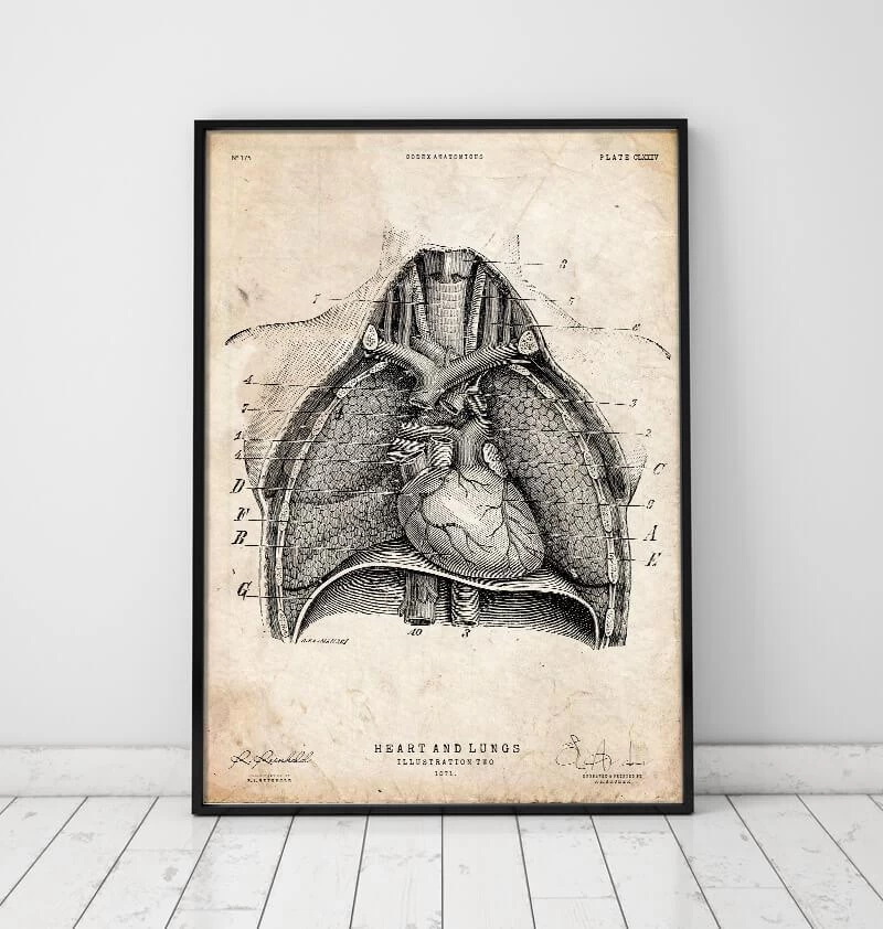 This heart and lungs anatomy art print is a wonderful addition to any interior and will make a perfect gift for doctors, nurses and medical students
