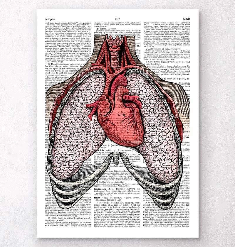 This heart and lungs anatomy art print is a wonderful addition to any interior and will make a perfect gift for doctors, nurses and medical students