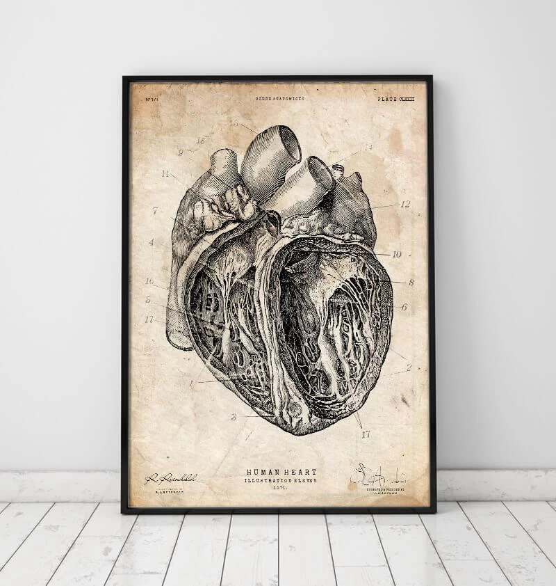 This heart anatomy art print is a wonderful addition to any interior and will make a perfect gift for doctors, nurses and medical students