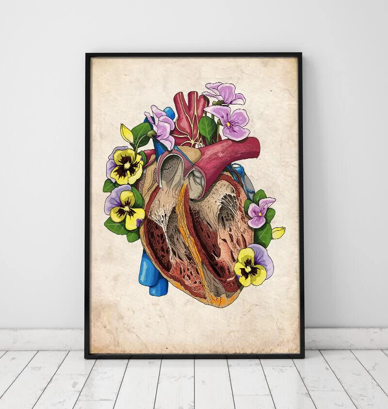 This heart anatomy art print is a wonderful addition to any interior and will make a perfect gift for doctors, nurses and medical students