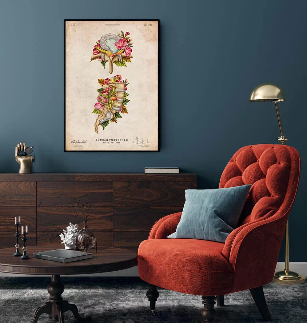 This anatomy art print is a wonderful addition to any interior and will make a perfect gift for doctors, nurses, and medical students. Also available on black and white backgrounds.