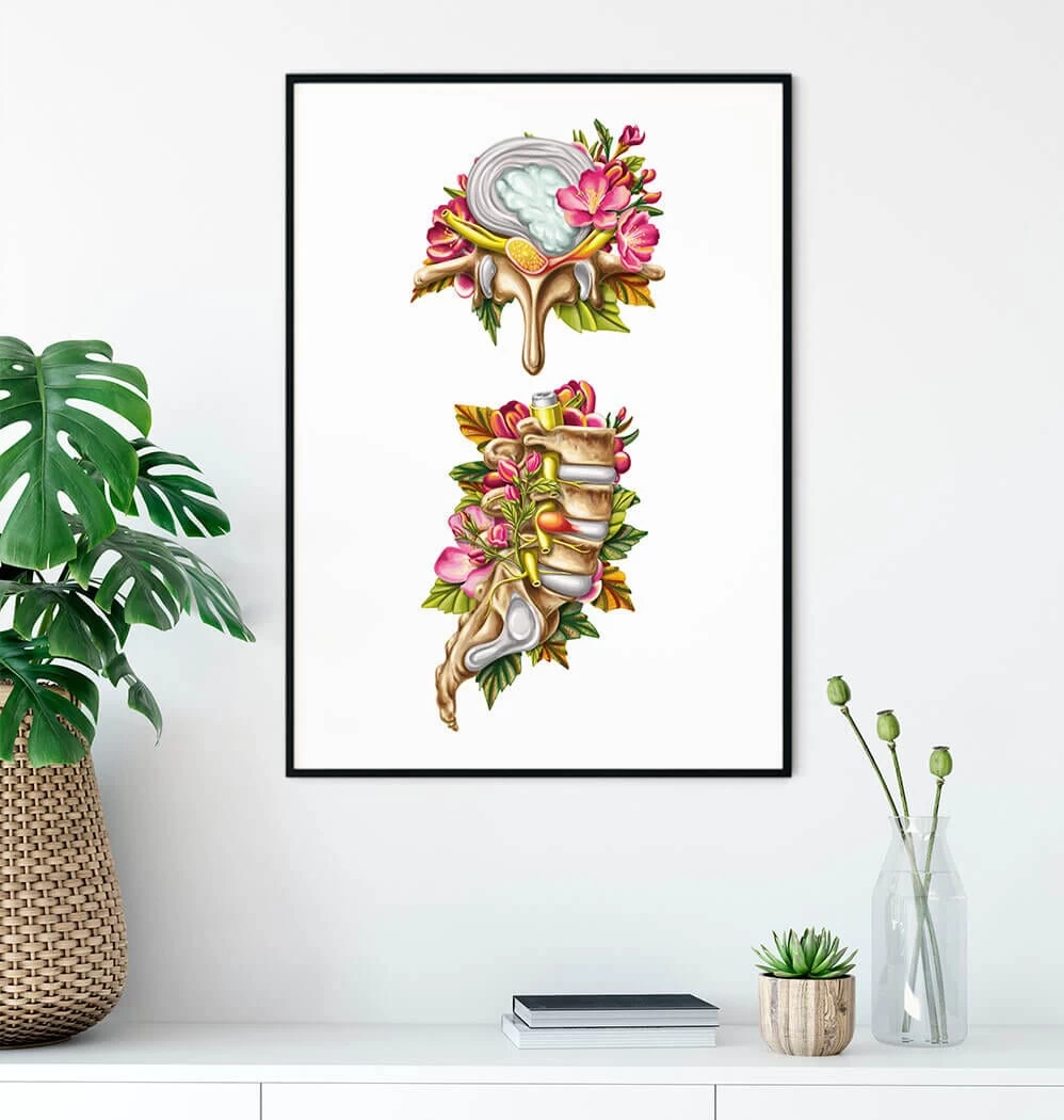 This anatomy art print is a wonderful addition to any interior and will make a perfect gift for doctors, nurses, and medical students. Also available on black and vintage backgrounds.