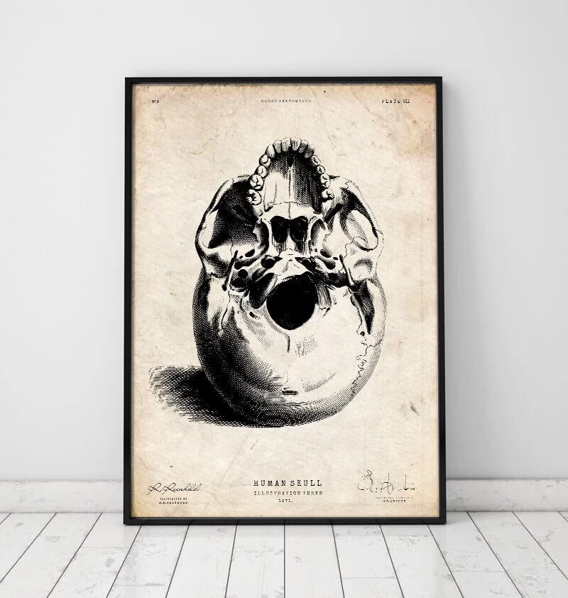 This skull anatomy art print is a wonderful addition to any interior and will make a perfect gift for doctors, nurses and medical students