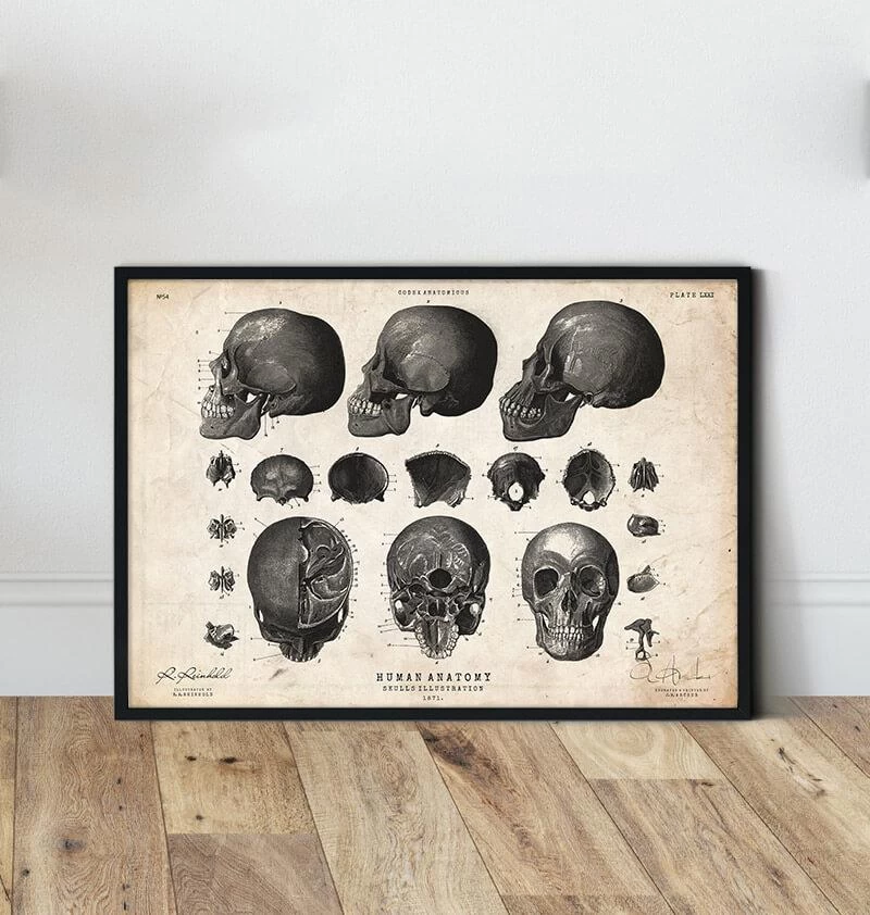 This skull anatomy art print is a wonderful addition to any interior and will make a perfect gift for doctors, nurses and medical students