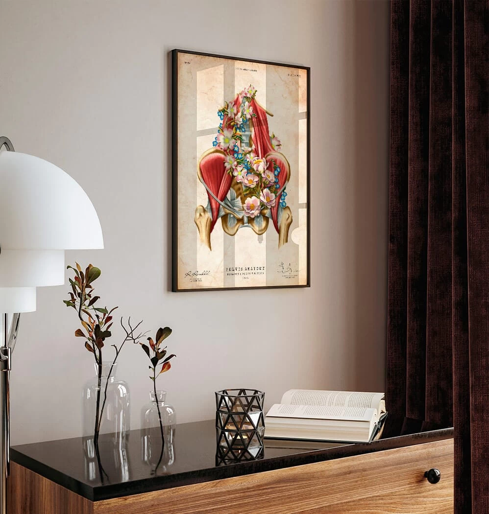 Also available on white and black backgrounds. This iliacus and psoas muscles anatomy art print is a wonderful addition to any interior and will make a perfect gift for doctors, nurses, and medical students.