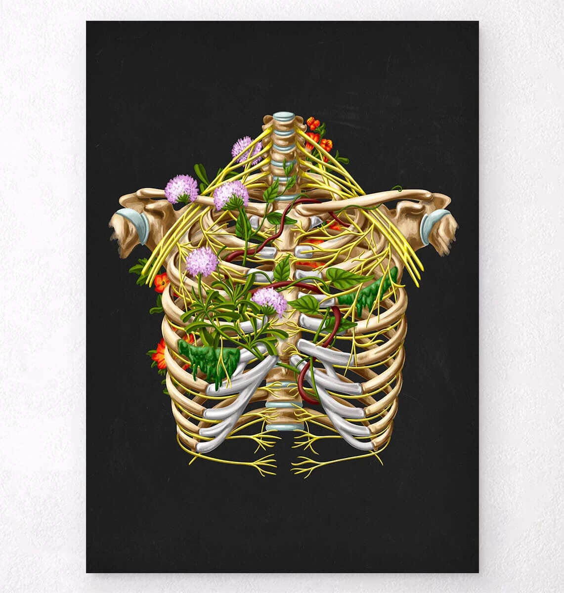 This intercostal nerves anatomy art print is a wonderful addition to any interior and will make a perfect gift for doctors, nurses, and medical students. Available on white and vintage backgrounds.