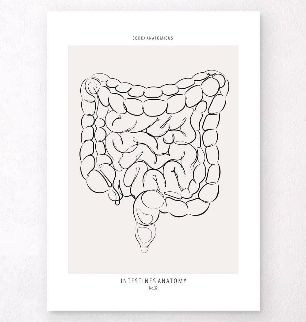 Line art illustration representing rectum, small and large intestines. This premium art print is a perfect décor piece for a home, study space, or GI clinic. It’s also a great gift for health workers and medical students.