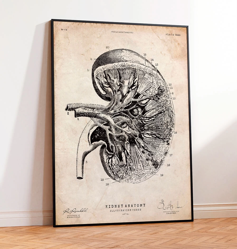 This kidney anatomy art print is a wonderful addition to any interior and will make a perfect gift for doctors, nurses and medical students